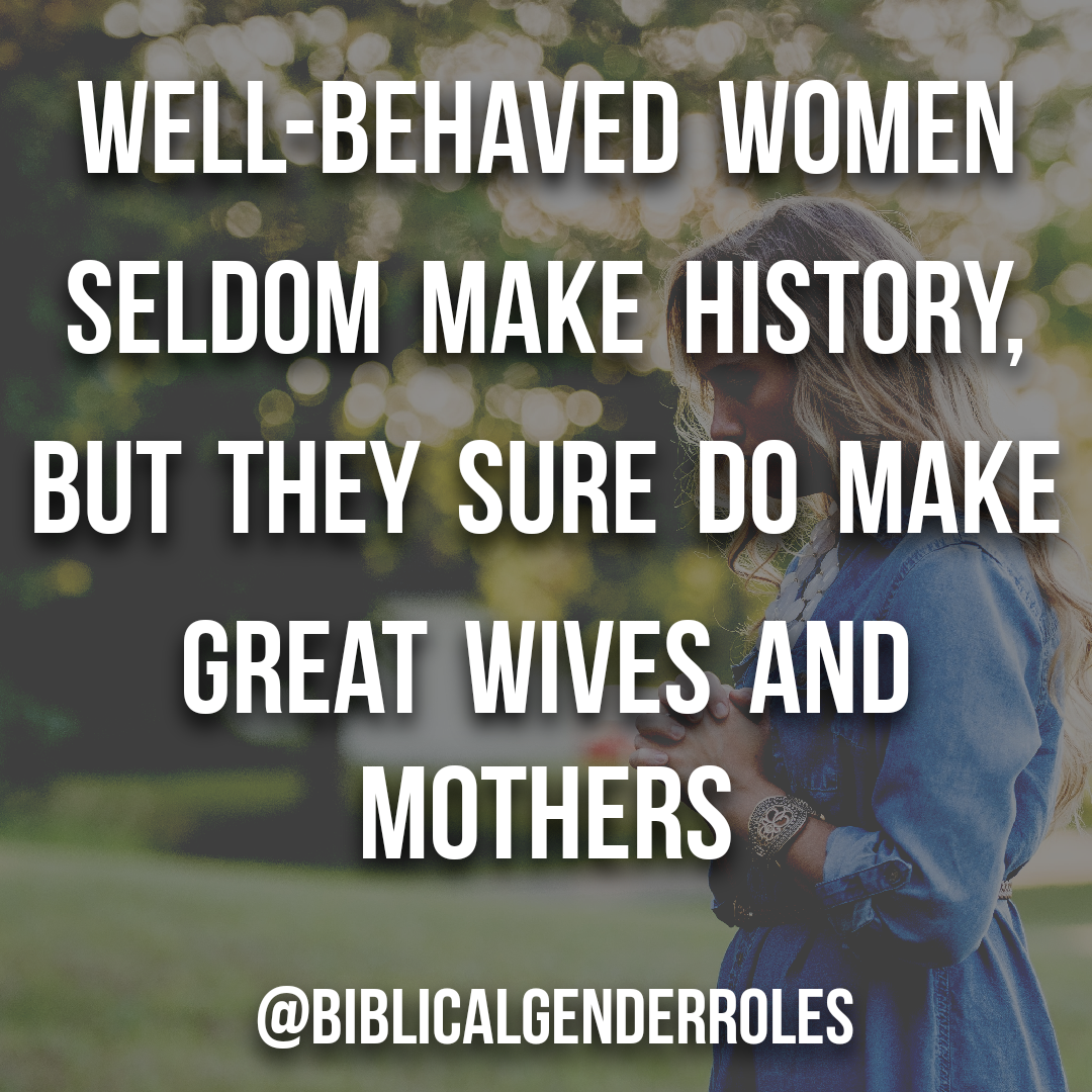 At the height of the second wave feminist movement of the 1970s, the phrase “Well-behaved women seldom make history“ was coined by Harvard professor Laurel Thatcher Ulrich. She wrote the phrase while writing a little article in 1976 about funeral services and lamenting that the good that women do in society often goes unnoticed. In that article, she was not meaning to encourage women to misbehave in order to get attention.