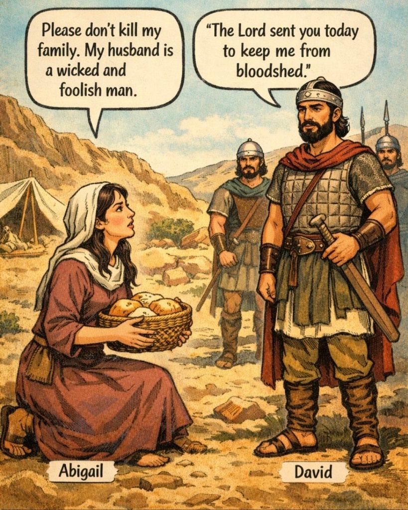 Her husband Nabal foolishly refused David’s men and insulted them.